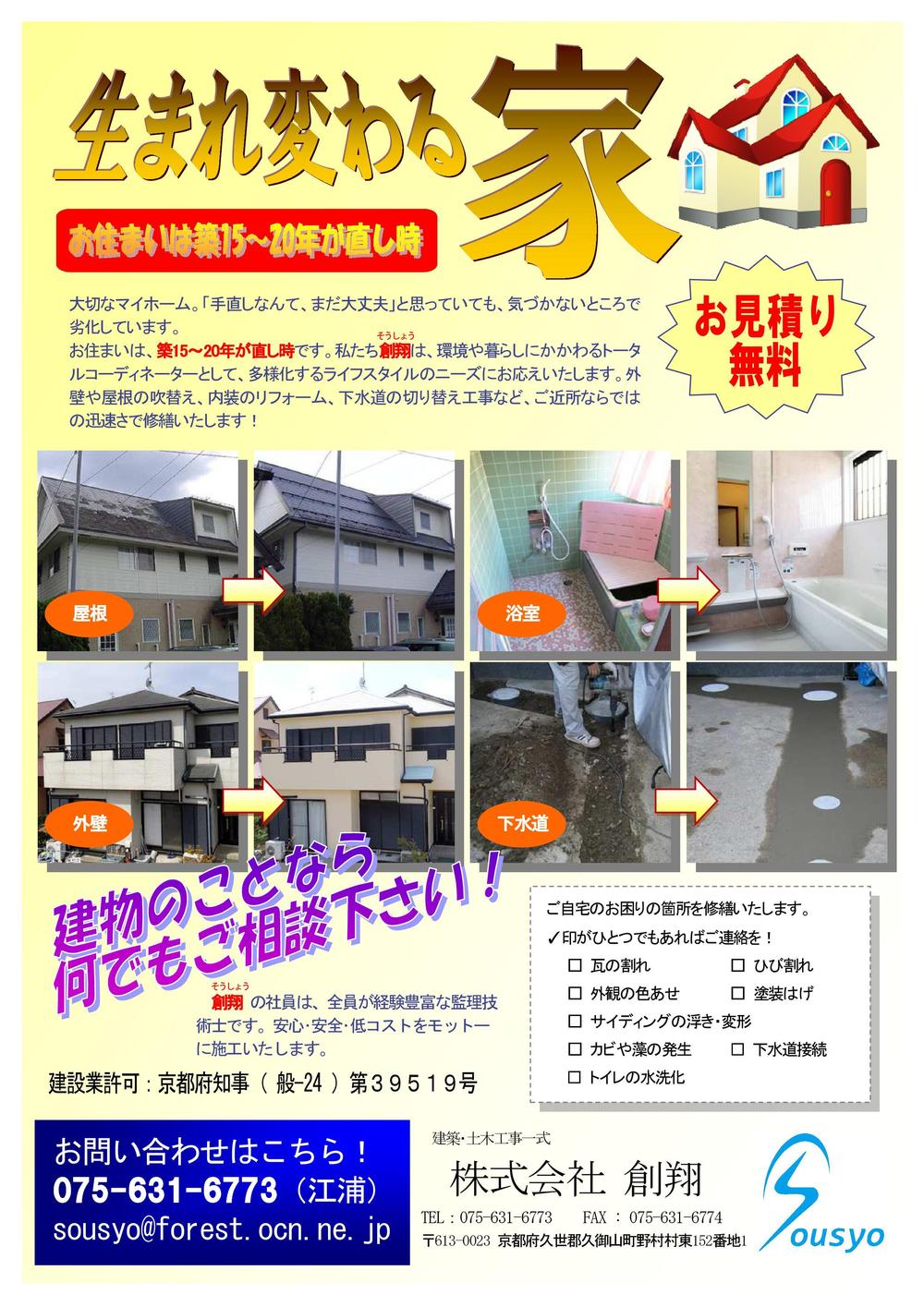 外壁コーディングポスティング用チラシデザインリフォーム・外壁塗装のチラシデザイン、ホームページ制作はチームカスガイ。