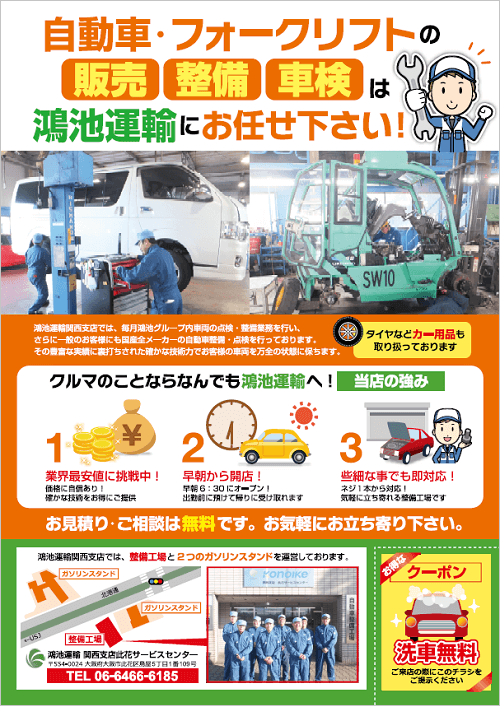 自動車整備工場のチラシ制作は大阪で格安のオフィスSASAJIMAへ。