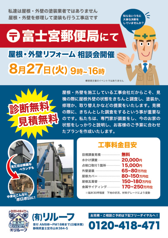 チラシ制作事例 – 工事店の屋根・外壁リフォーム相談会のチラシデザインASOBOAD。