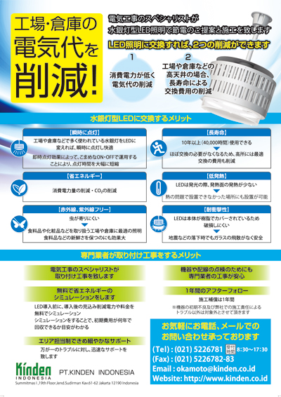 水銀灯型LED照明の取り付け工事に関するチラシアリキヌ:チラシ制作部。