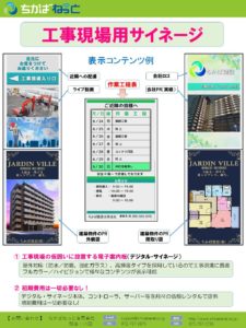 建設会社様向け『工事現場用サイネージ』Newチラシ作成ちかばねっと ライブサイネージ。