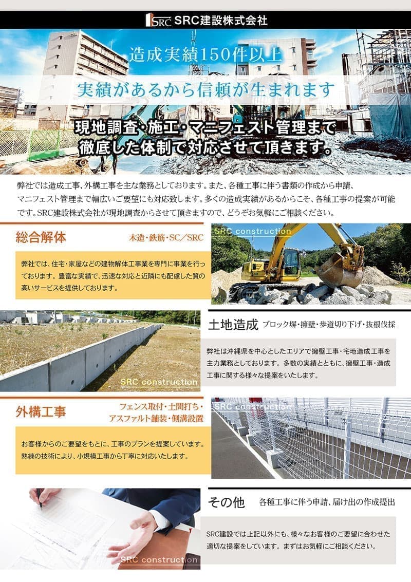 沖縄の印刷デザインと看板製作はユープロモ 工事関係チラシ・フライヤー実績。