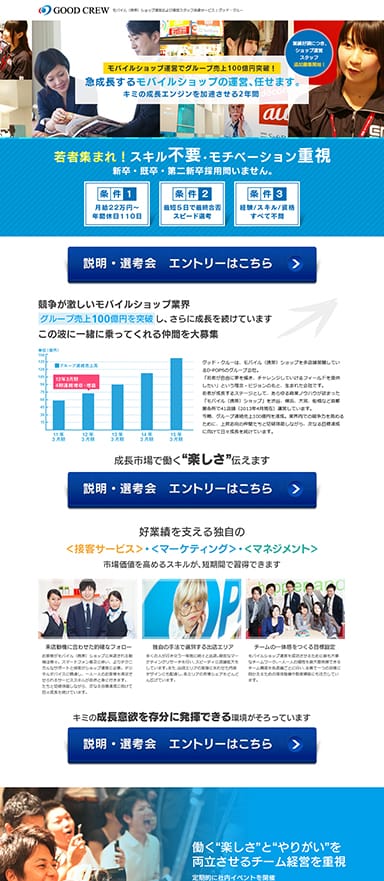 モバイルショップの採用 求人 ランディングページを制作lp制作・改善のコンバージョンラボ。