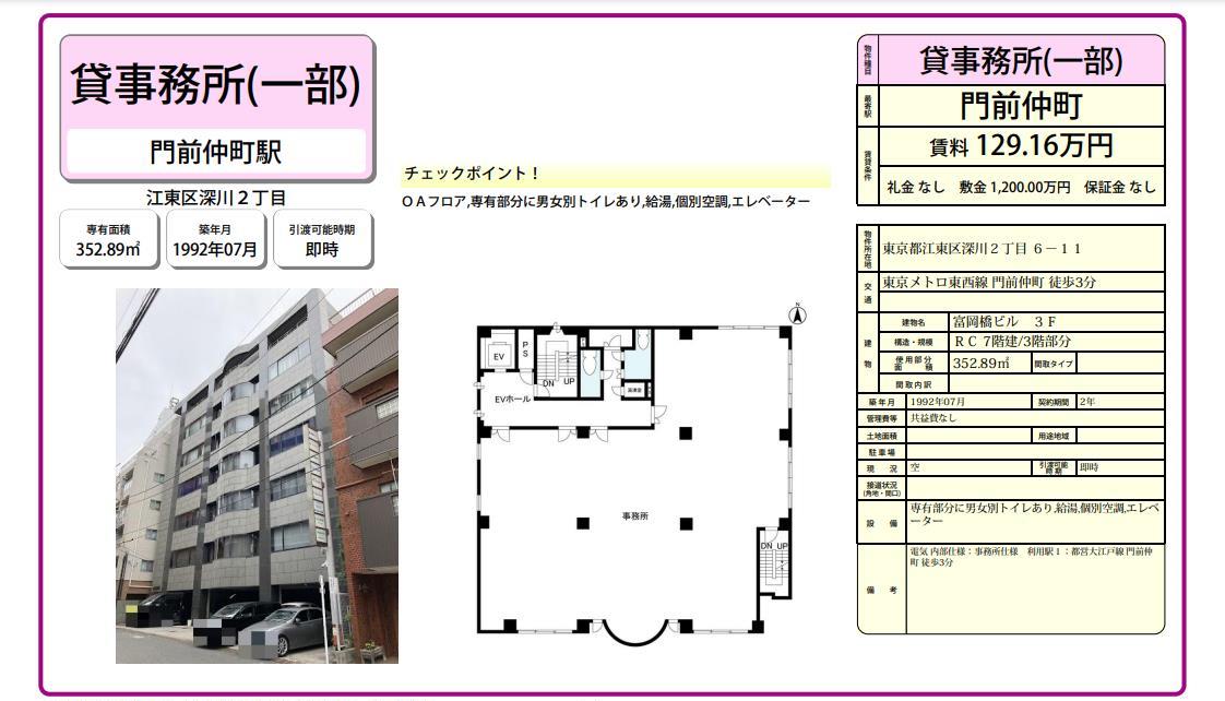 江東区深川2-6-11 門前仲町駅富岡橋ビル部屋番号:3Fの賃貸オフィス・貸店舗 物件詳細東京貸事務所.biz 57596。