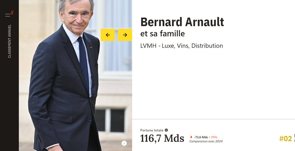 LVMHのベルナール・アルノーが2位に陥落、トップはエルメスの創業家一族 フランスの2025年長者番付WINE REPORT。