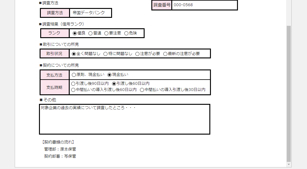 民間企業信用調査依頼書 兼回答書 業務アプリ作成ツール AppSuite。