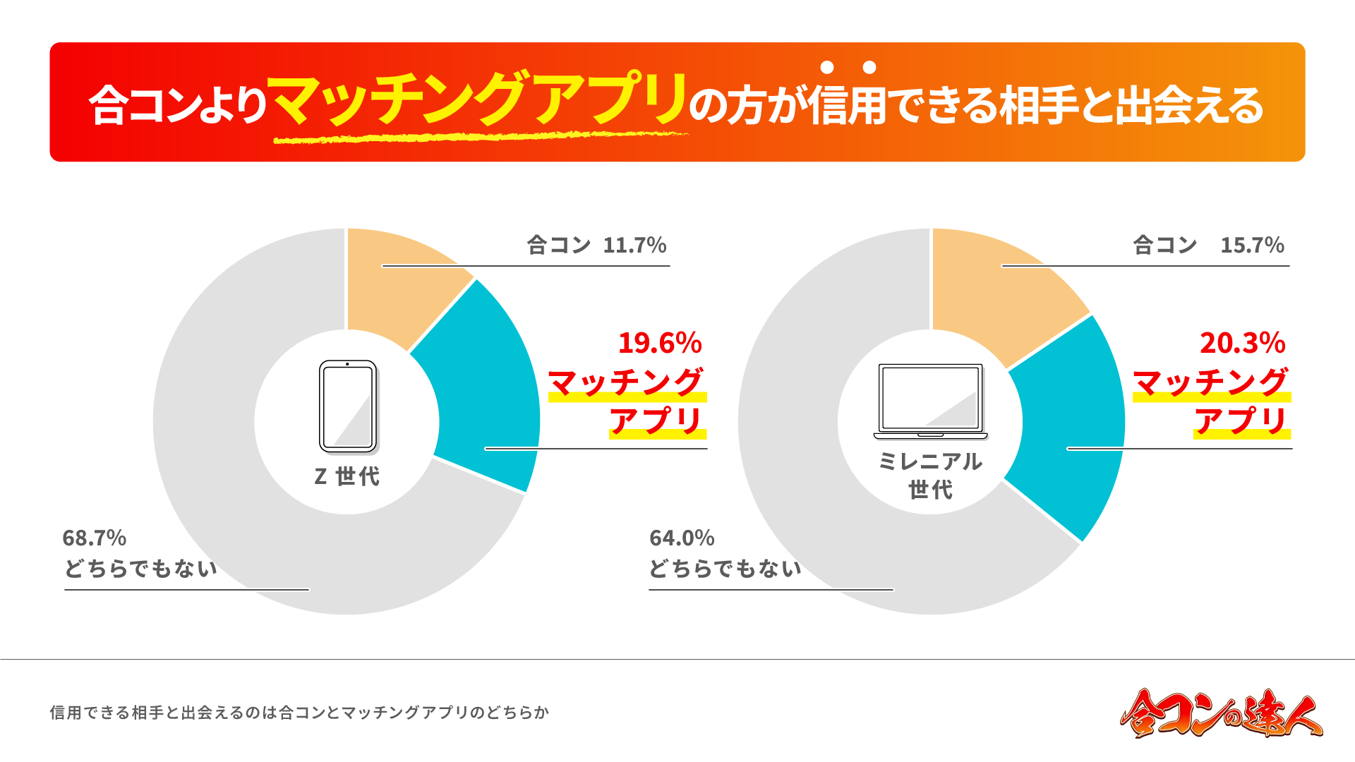 調査 信用できる相手と出会えると思うのも、マッチングアプリ - 合コンの達人。