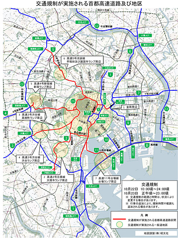 警視庁、10月22日~23日の車両通行止めの詳細を画像で公開 外国要人の来日に伴う交通規制 - トラベル Watch。