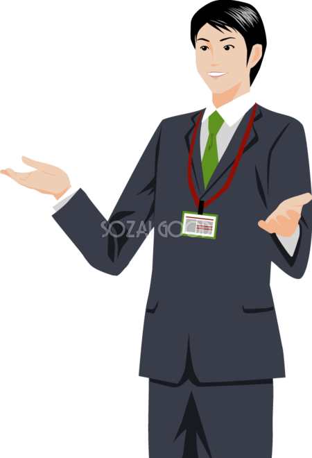 ビジネスマンの全身イラスト「案内する・おじぎする」可愛い無料イラスト・人物素材 - フリーラ。