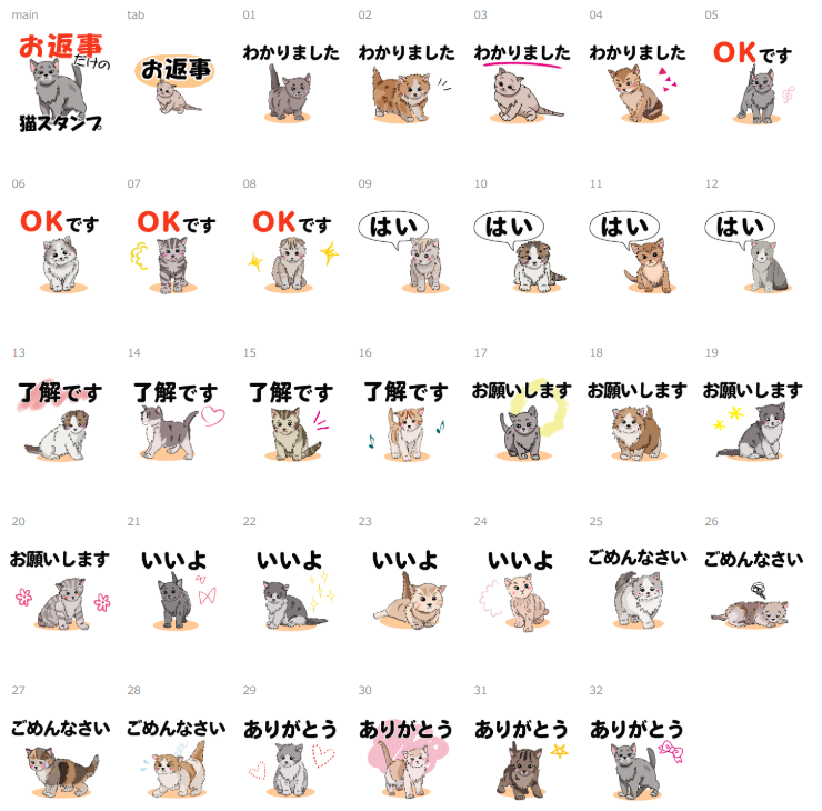無料LINEスタンプ「ありがとうございました 猫」無料LINEスタンプ。