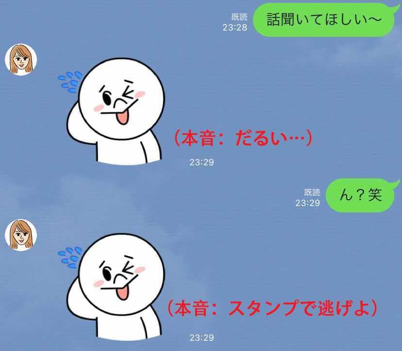 これで勘弁して。LINEでスタンプだけ返す女性の本音4つ「マイナビウーマン」。