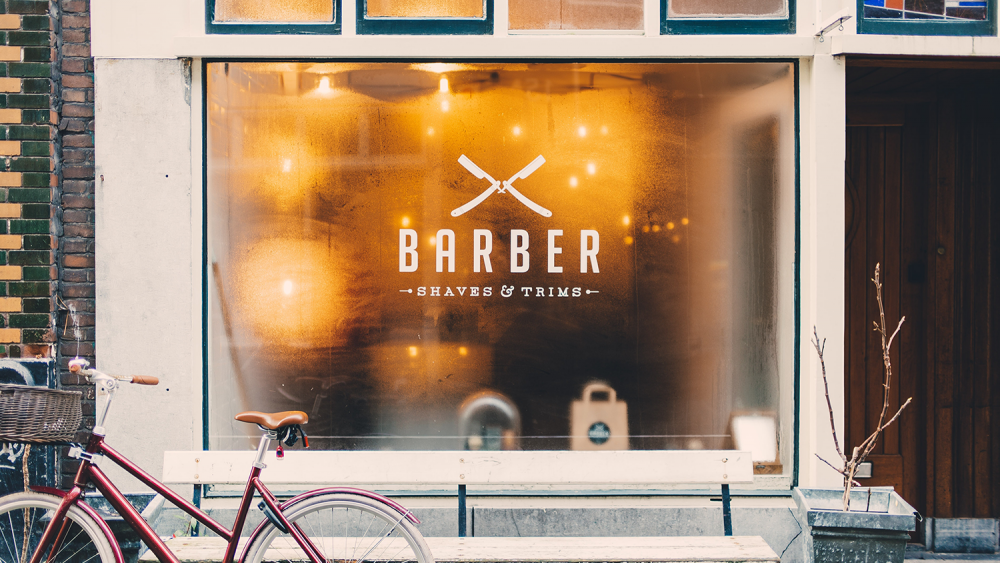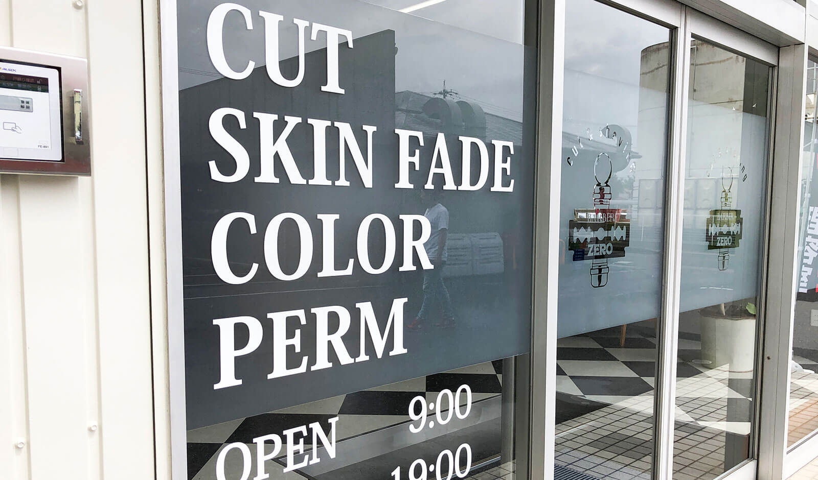 床屋さんの窓ガラス看板のデザイン・施工名古屋で看板制作は看板会社サインクリエイトにお任せください。