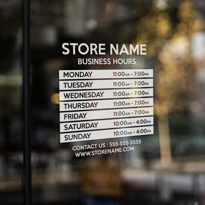 店舗用 おしゃれにカスタマイズ 営業時間 ショップ用 窓ステッカー 壁紙A-10。