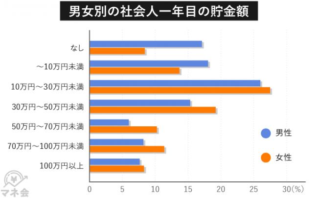 社会人一年目の貯金事情!女性は男性の2倍貯金できていた!?マネ会が1,000人を対象に調査株式会社CyberOwlのプレスリリース。