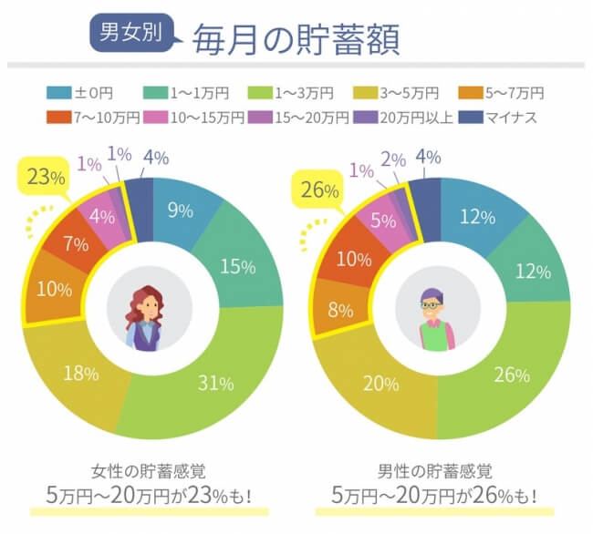 貯金する20代女性が増加中、貯金額は「100万円〜300万円未満」で男性より割合高く。