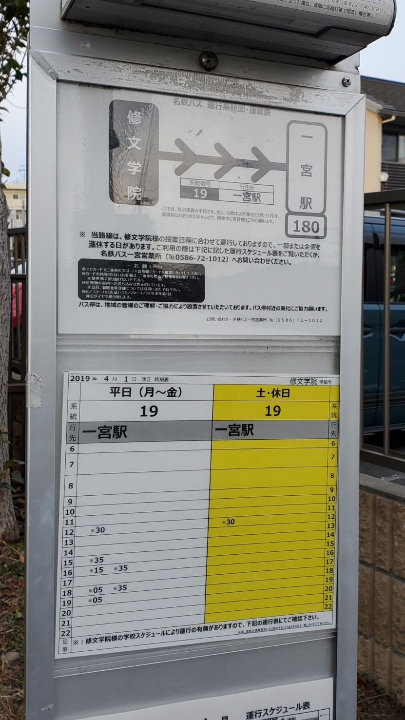 バス停時刻表 - 起バス停 - 名鉄一宮駅いき - おぼえがき ゆめてつどう。