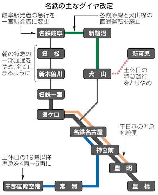 名鉄18日ダイヤ改定 岐阜方面、減便・直通廃止目立つ - 日本経済新聞。