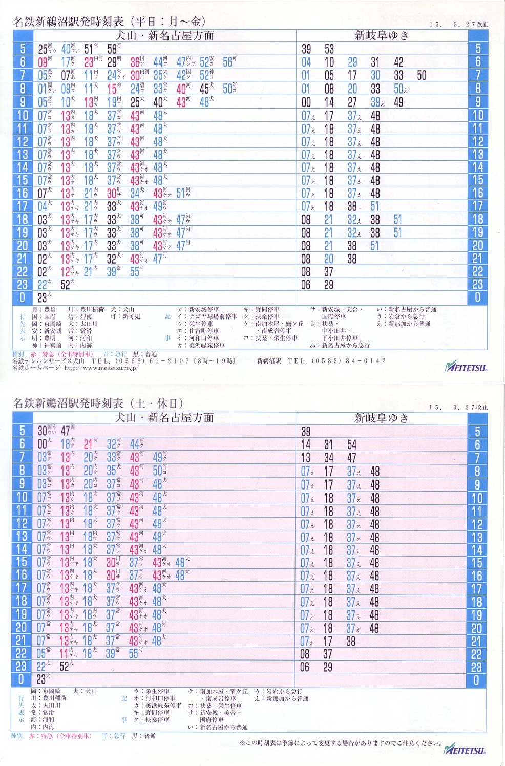 名古屋鉄道 名鉄 のポケット時刻表:鉄センWEB。