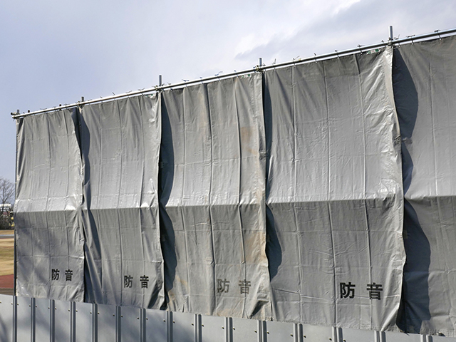楽天市場 防音シート 厚手厚さ1mm1.8m×3.4m 5枚セット~50枚セット グレー 足場 工事用シート 工事現場 建設工事 足場資材建設 建築 工事用 足場用 現場 ハトメ300ピッチ 吸音材 防音 しずか 防音材 建築資材 足場シート 作業用防音シート 解体 作業用シート 工事。