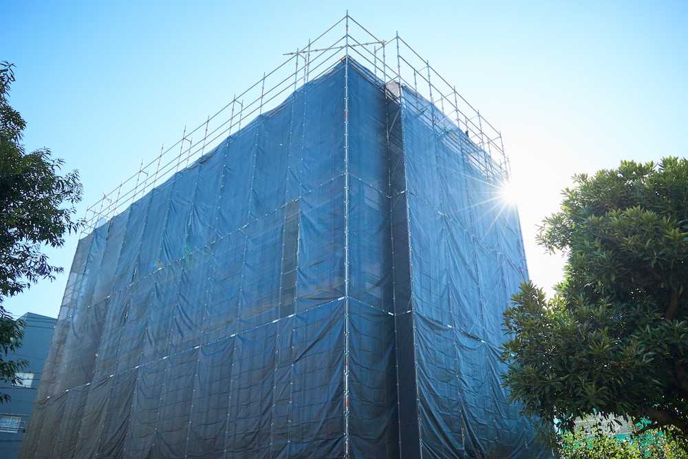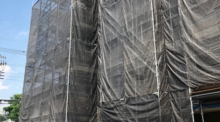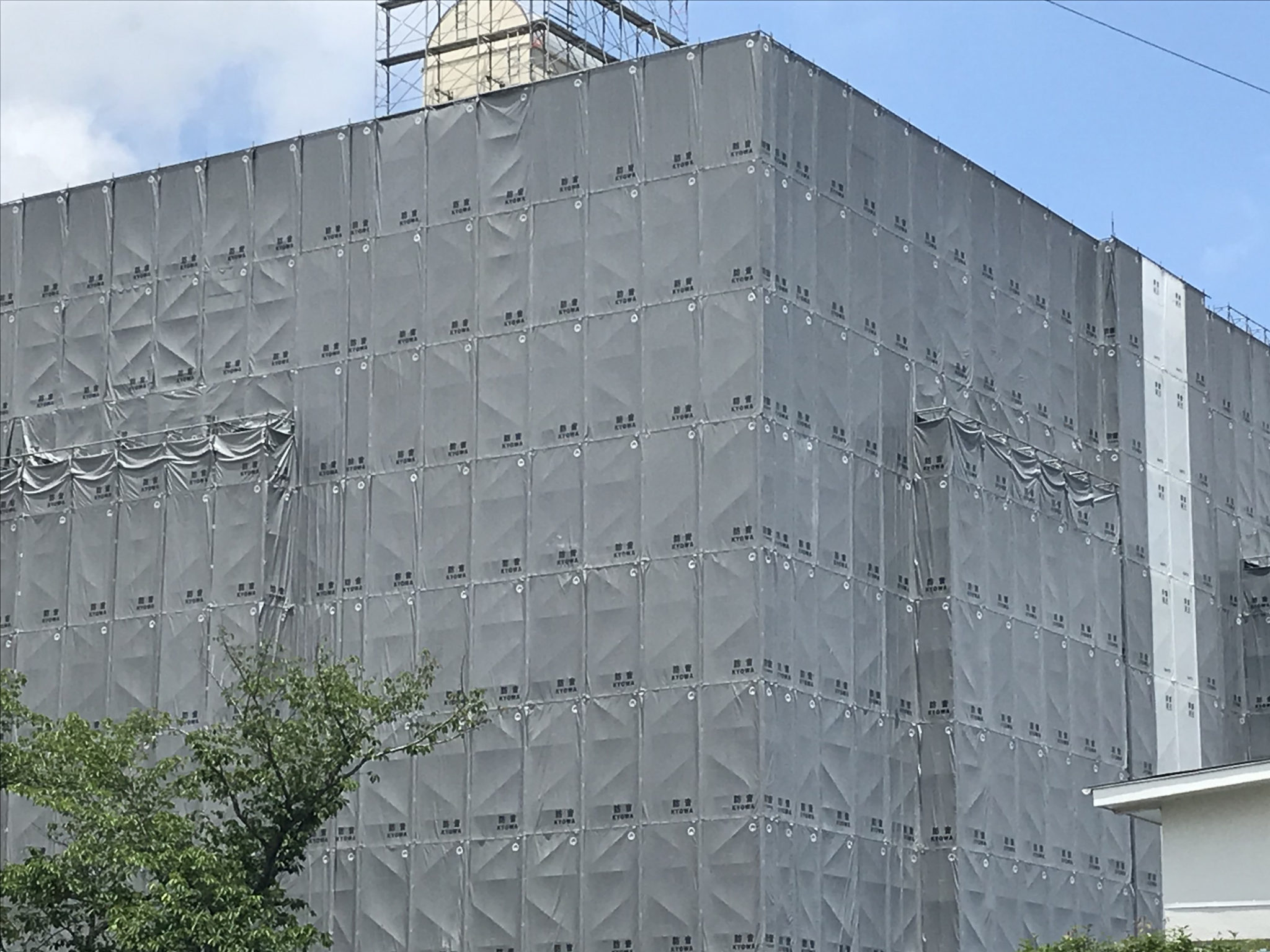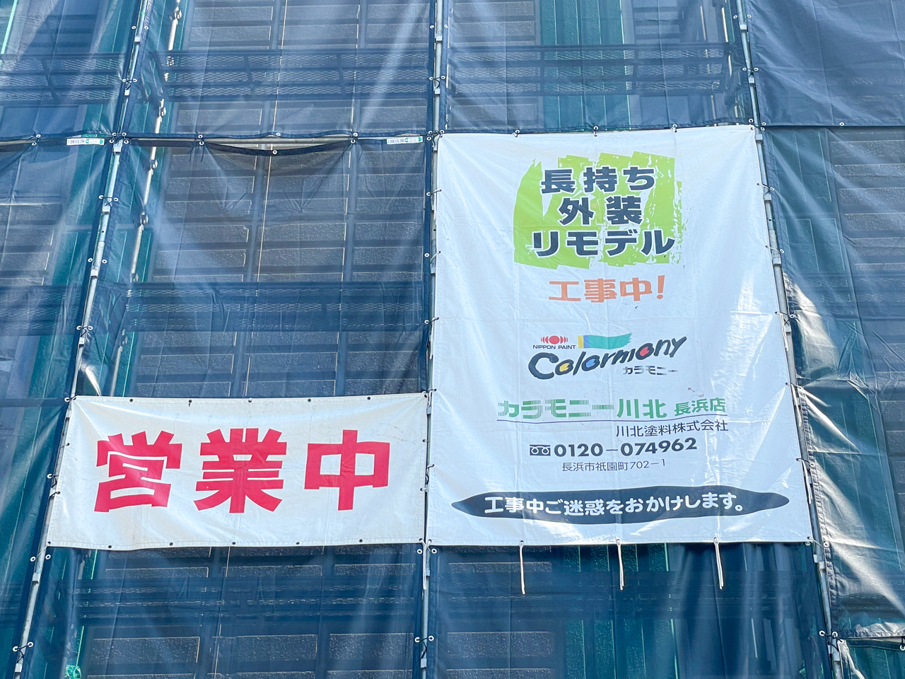 川北塗料様 足場シート 現場シート長浜市で発想力と技術力で製品づくりのオオハシテント-滋賀県を拠点にテント・ビニールカーテン・イベントテントの製作・販売・施工を行うテント専門店。
