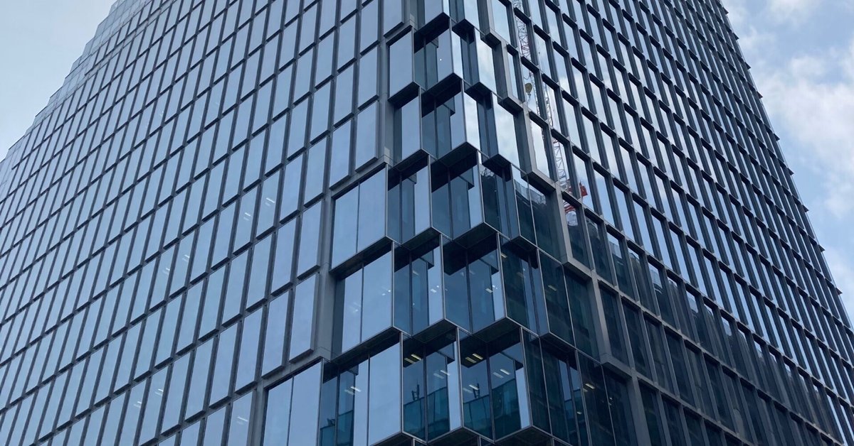 重松さんが設計を手掛けた天神ビジネスセンター。建物の角を落としたデザインが目を引く - 建築の地域性に着目 天神BC設計の重松象平さん 「OMANY」の初作品集 - 写真・画像 3 3西日本新聞me。