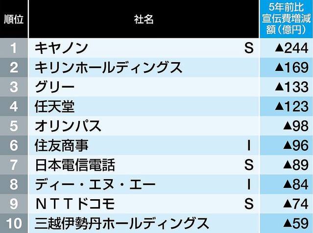 最新!「広告宣伝費を削った87社」ランキング - ライブドアニュース。