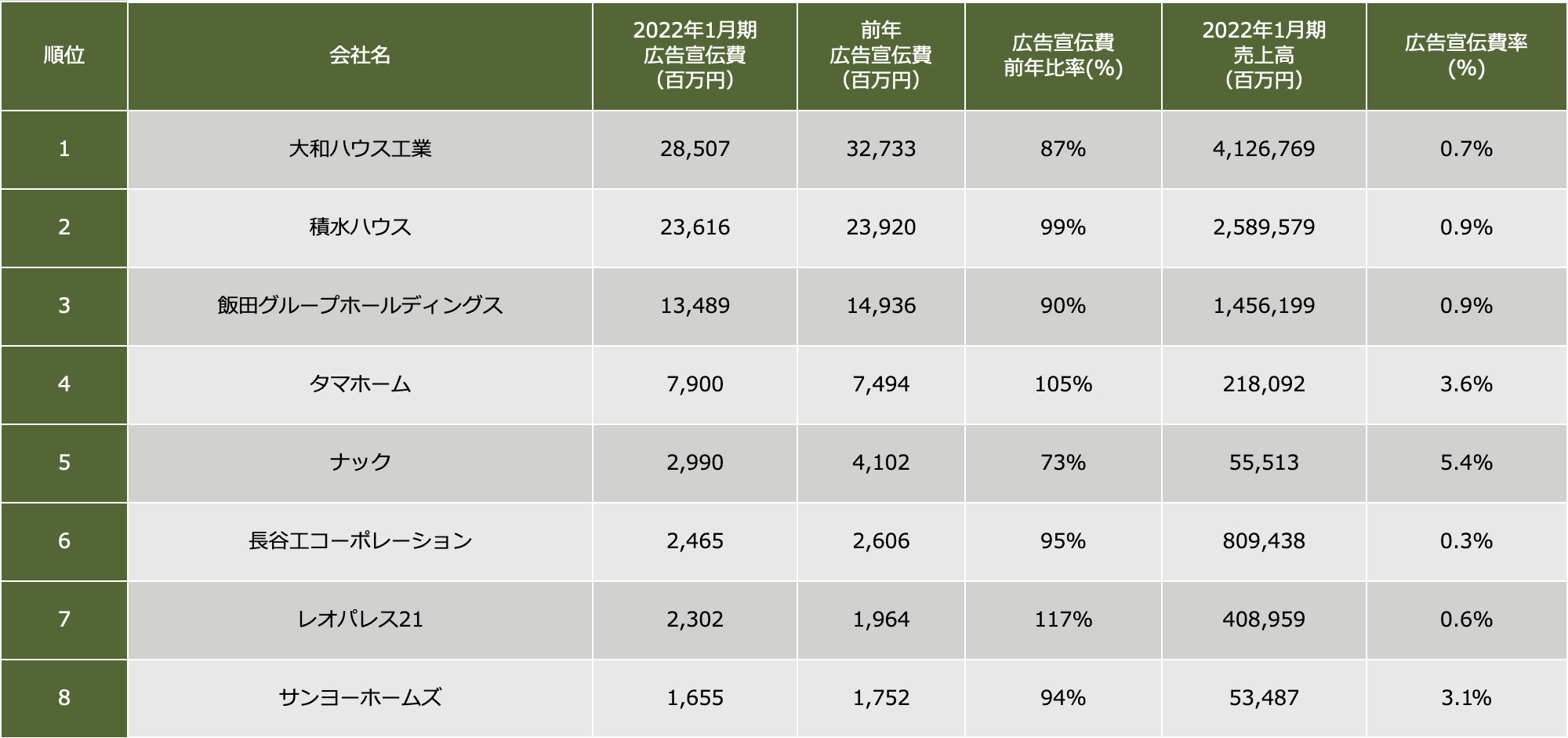 住宅建設業界広告宣伝費ランキング2022リビンマガジンBiz。