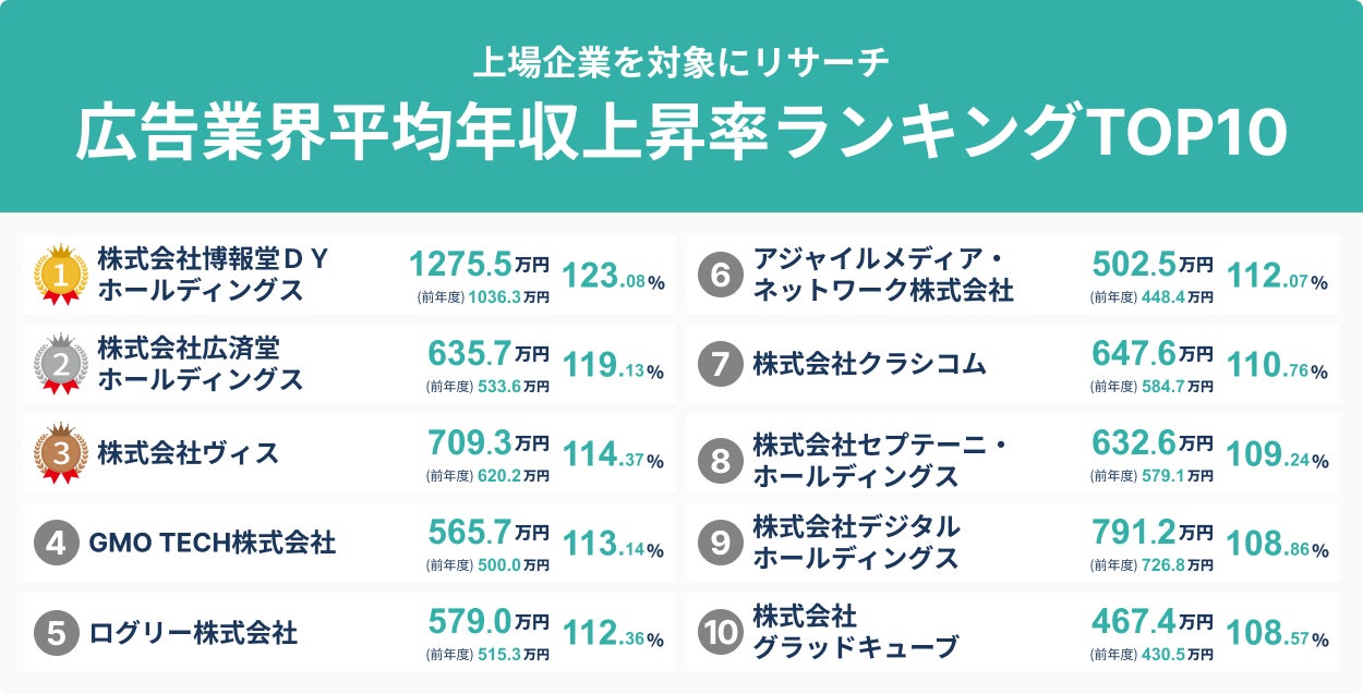広告業界、平均年収上昇率ランキングTOP10を発表! SalesNow DBレポート株式会社SalesNowのプレスリリース。