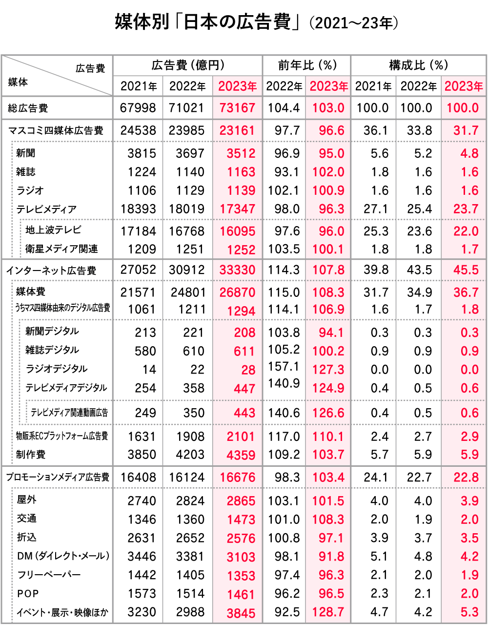 2023年 日本の広告費」解説 新型コロナ5類移行が追い風となり過去最高を更新。コロナ禍で広告費はどう変わった?ウェブ電通報。