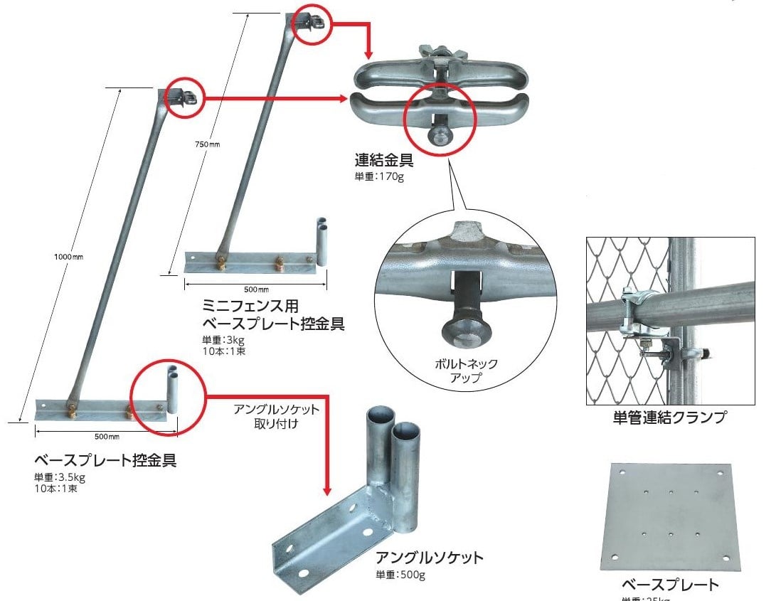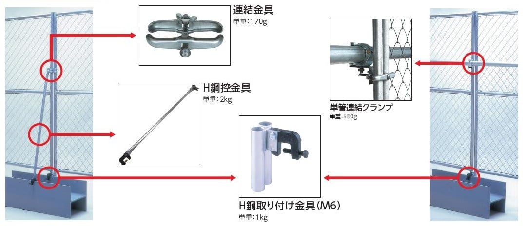 フェンス連結金具 クランプ無し クランプ付き カワモリ産業 – ぼんてん屋足場や足場材販売と買取の総合通販サイト。
