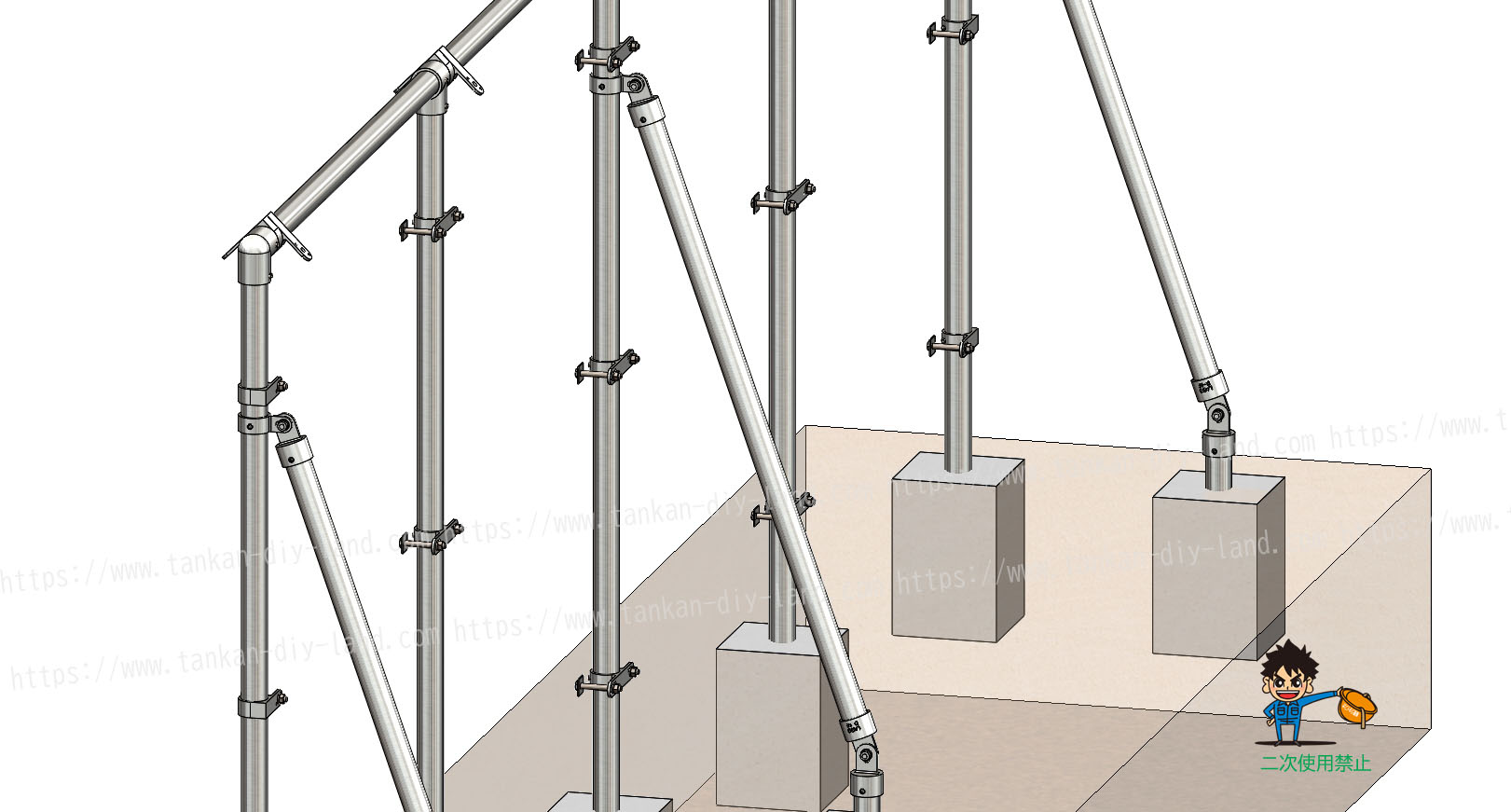 柵⑤-控え柱部単管パイプのDIYや組み方の学習なら単管DIYランド。