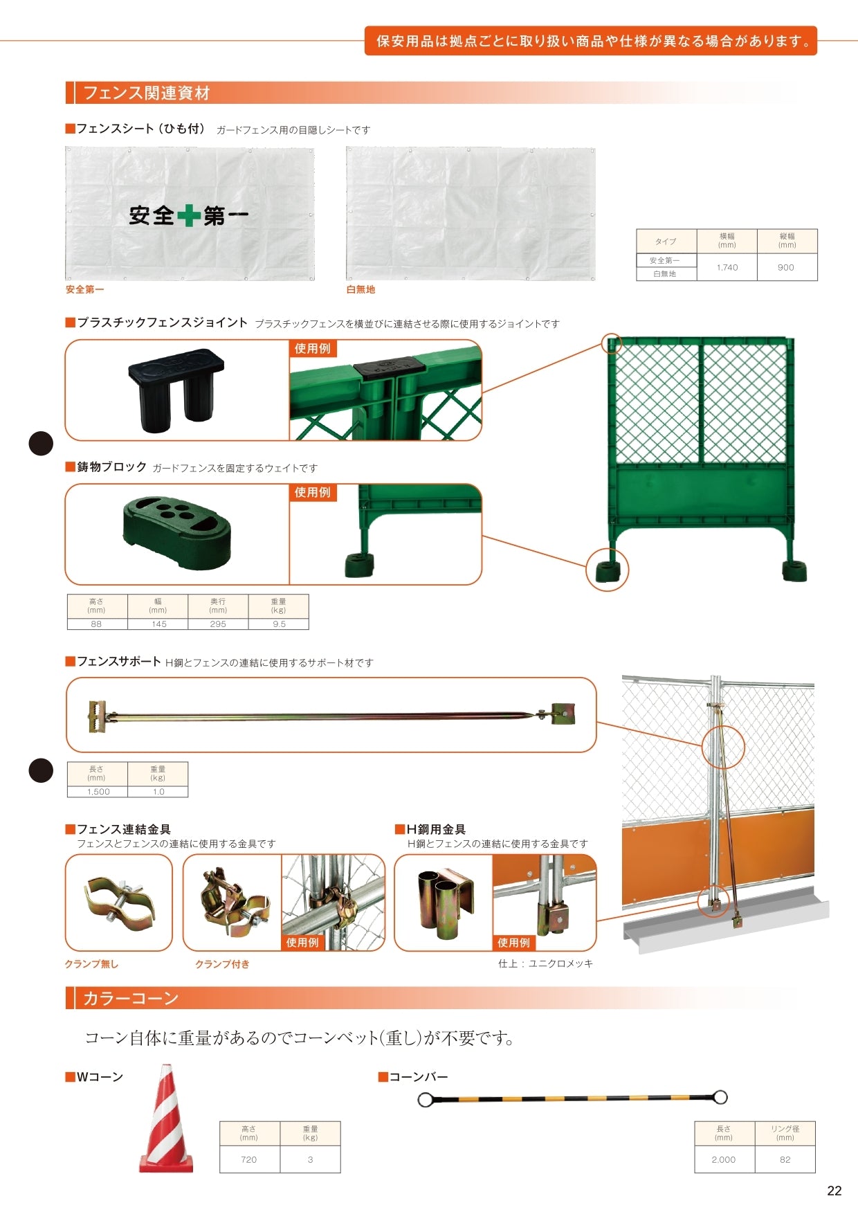 フェンスサポート 単管用保安用品・工事保安機材・交通標識などの製作販売レンタル テントー標識。