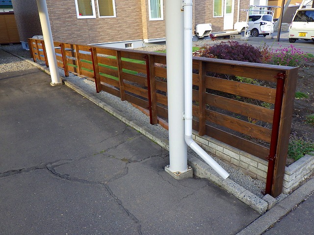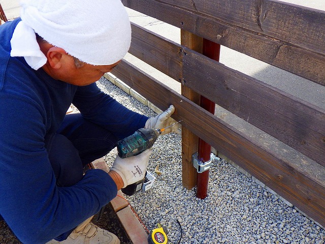 単管フェンスをウッドフェンスに – 株式会社イノタニBLOG。