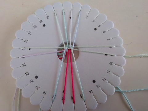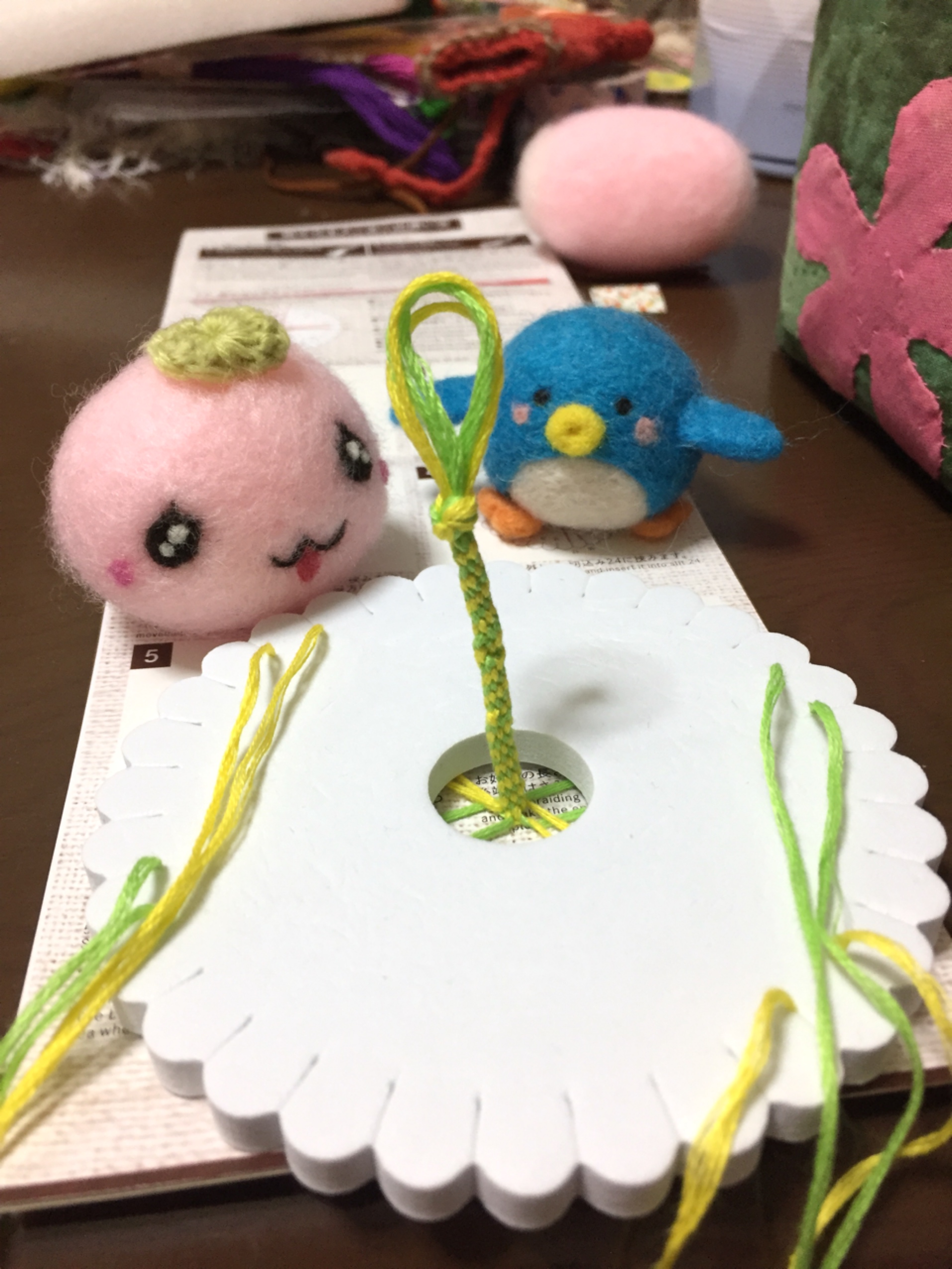ダイソーの組みひもメーカーで、ミサンガ作り。羊毛フェルトマスコット工房 ベガのひつじ。