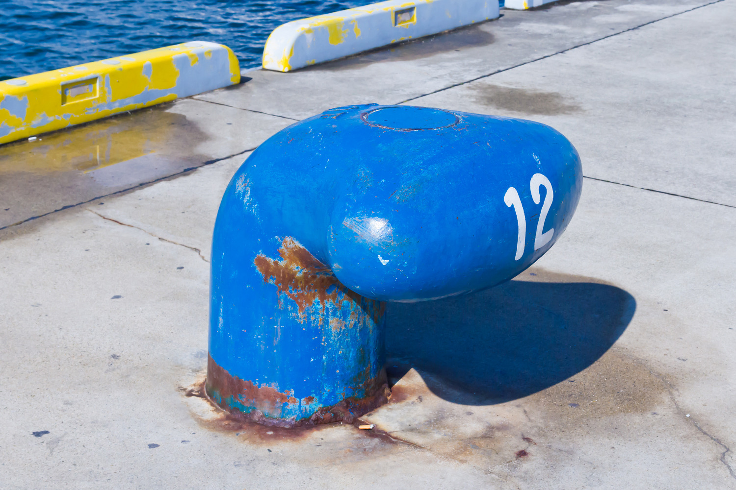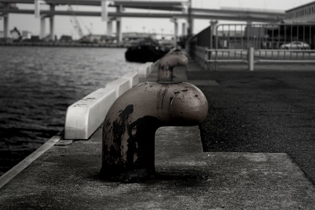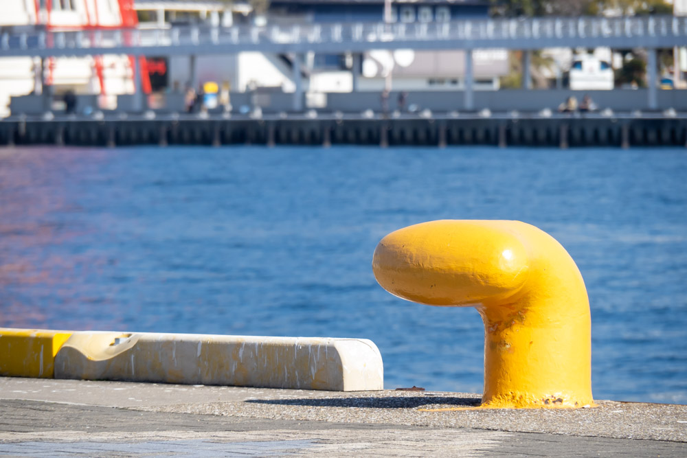 Foto ボラード 港で、ボラード 係船柱 を撮影した写真です。調べたところ色々な呼び名があり、ビット bitt や、クリートcleatとも呼ばれているようです。今回は一般的な、ボラード bollardと表記させて頂きました。 do StockAdobe Stock。
