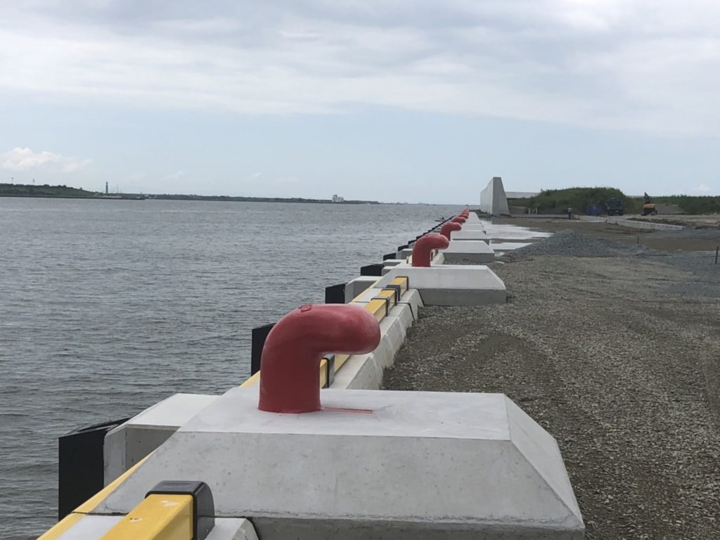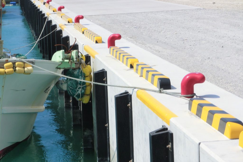 みなとん@京浜港湾事務所 公式 on X: "ずーっと並んでいるのは真新しい係船柱 コンテナ船を係留 と防舷材 船を受け止める です。3月初め、横浜港南本牧ふ頭、日本で二つ目となる水深18mの耐震強化岸壁の工事は徐々に仕上げの段階に入っています。横浜港南。