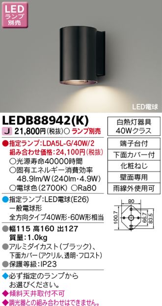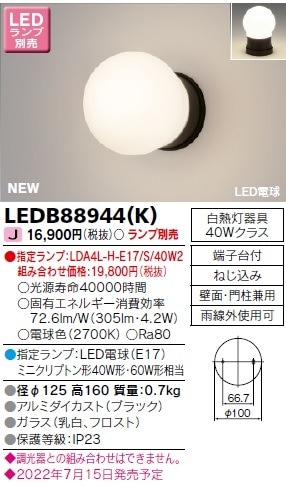 東芝ライテック即納・在庫品 東芝 LEDB88931 ポーチ灯 屋外用ブラケットライト LEDランプ 雨線外使用可 壁面取付専用 LEDランプ別売アウトドアブラケット : 電材アイオライト ヤフー店 - 通販 - Yahoo!ショッピング。