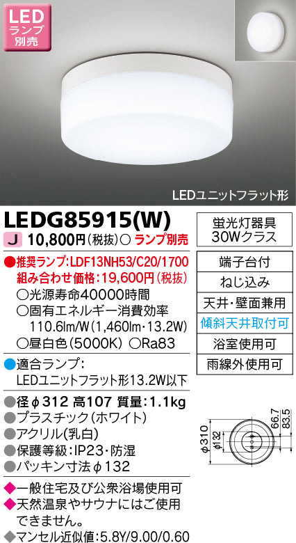 東芝 アウトドア LEDポーチ灯 LEDユニットフラット形8.0W以下用ランプ別売一般住宅照明 防湿・防雨形 LEDB85903 KLEDアウトドア・小形シーリングライト 玄関、軒下、住宅向け東芝ライテック 株。