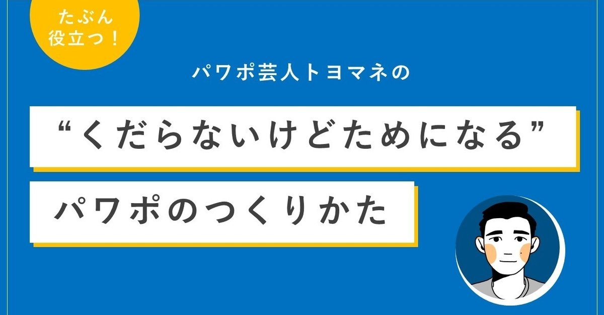 たぶん役立つ ”くだらないけどためになる”パワポのつくりかたトヨマネうねり代表。
