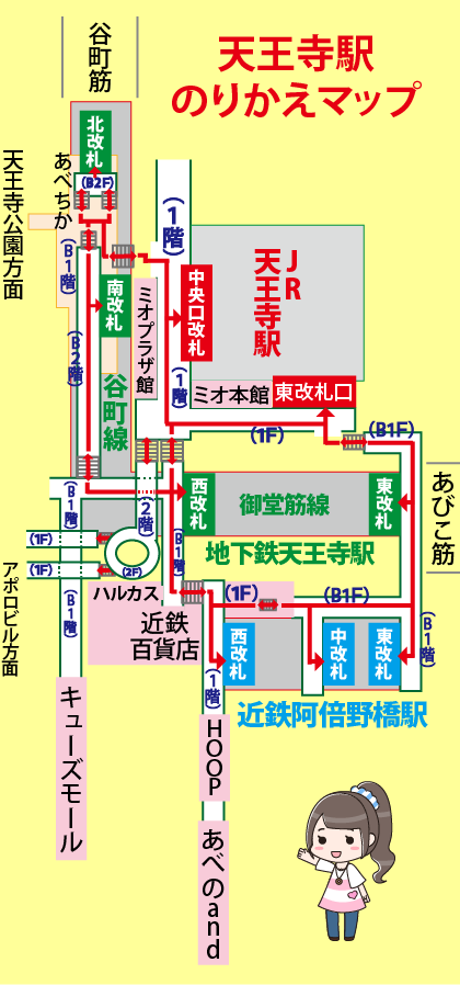 JR天王寺駅から谷町線天王寺駅までの行き方 逆の地下鉄からJR在来線へ乗り換えも。