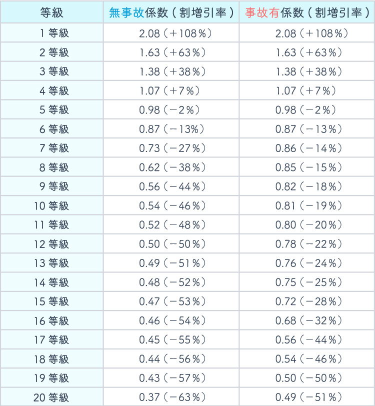 20等級の保険料相場・割引率は?事故を起こしたらどれだけ高くなる? - SBIの自動車保険比較 インズウェブ。