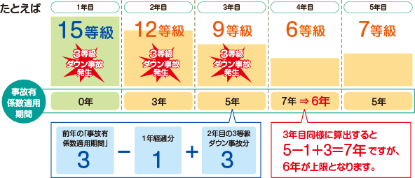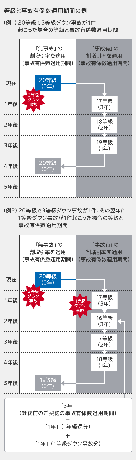 3等級ダウン事故・1等級ダウン事故・ノーカウント事故とは? - SBIの自動車保険比較 インズウェブ。