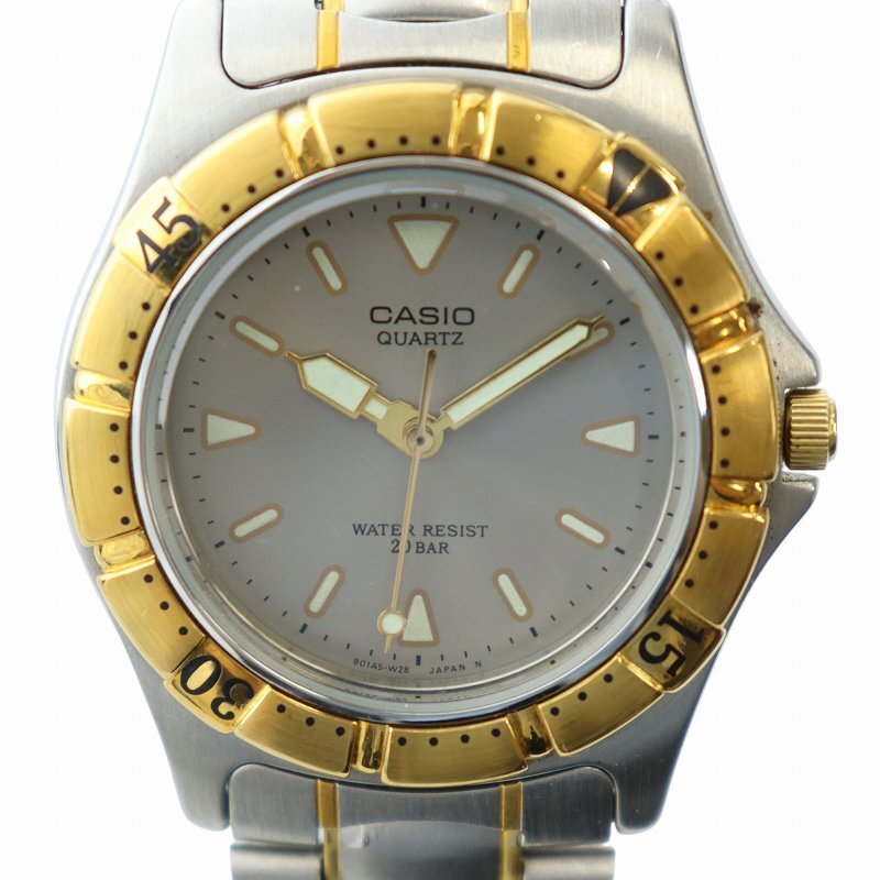 カシオ CASIO 腕時計 ウォッチ クォーツ ラウンド ロゴ ゴールド色 シルバー色 MD-722 □GY18MQ。