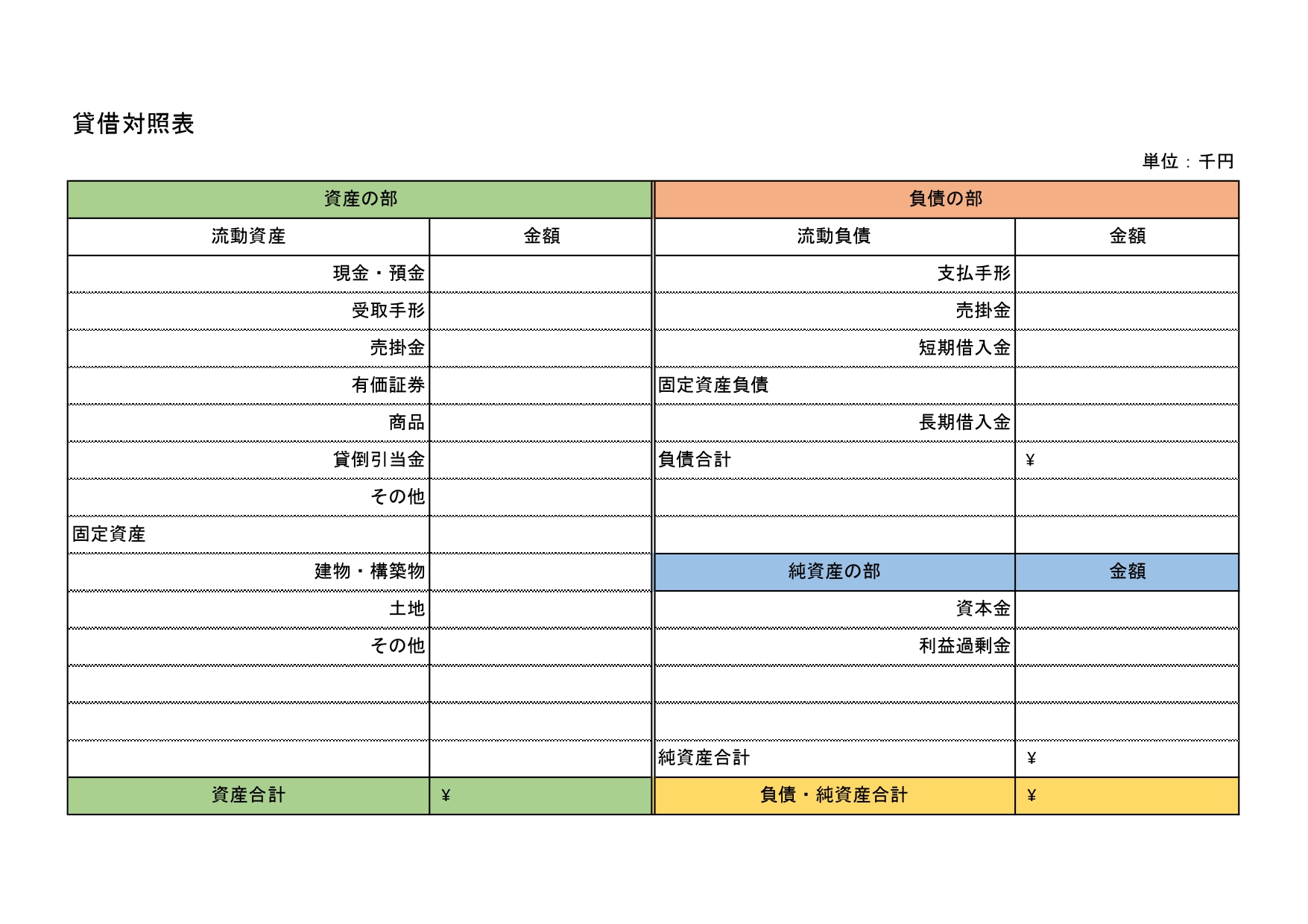 貸借対照表テンプレートは個人利用も出来る!無料にてダウンロード! ワード・エクセル・PDFテンプレボール。