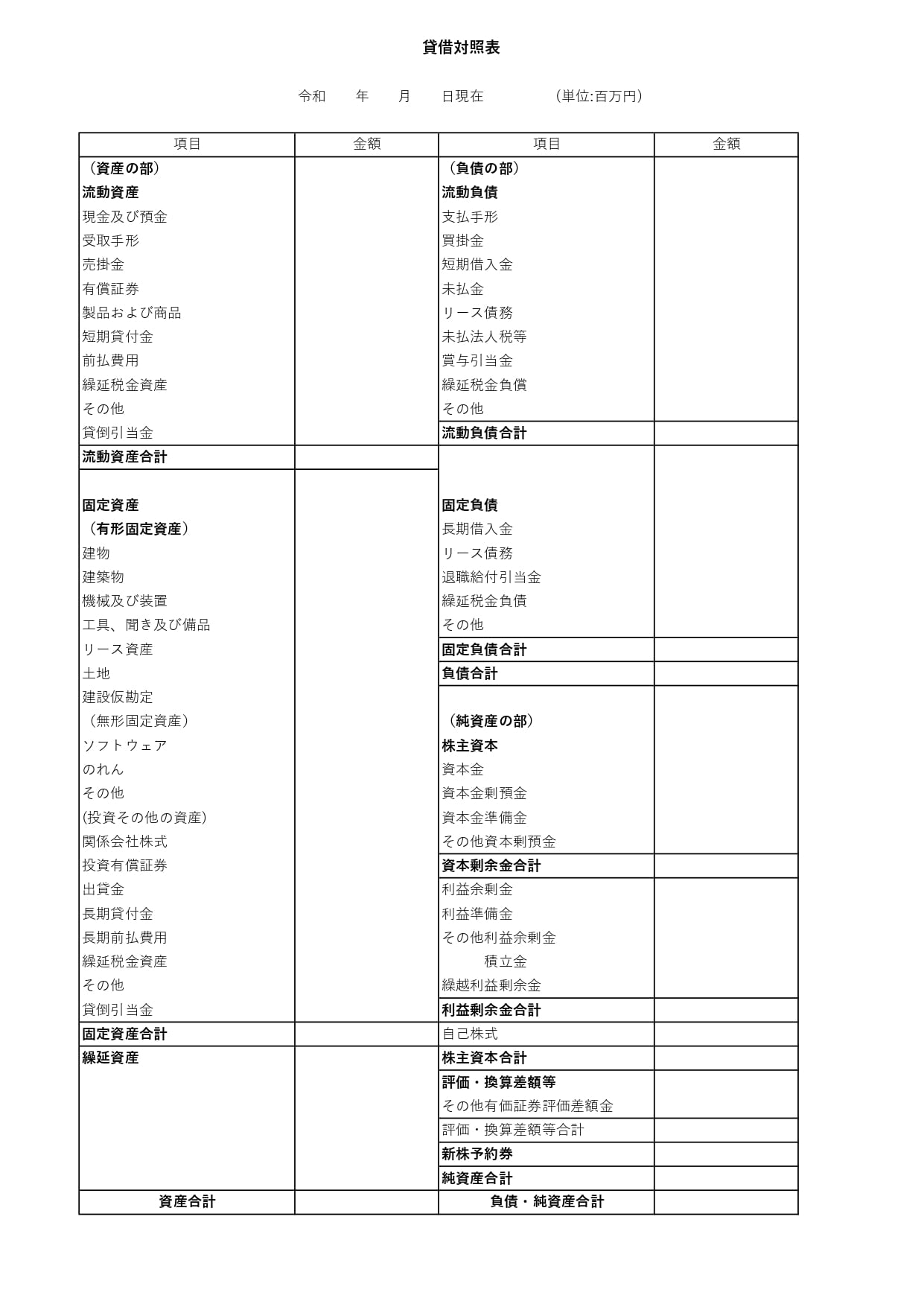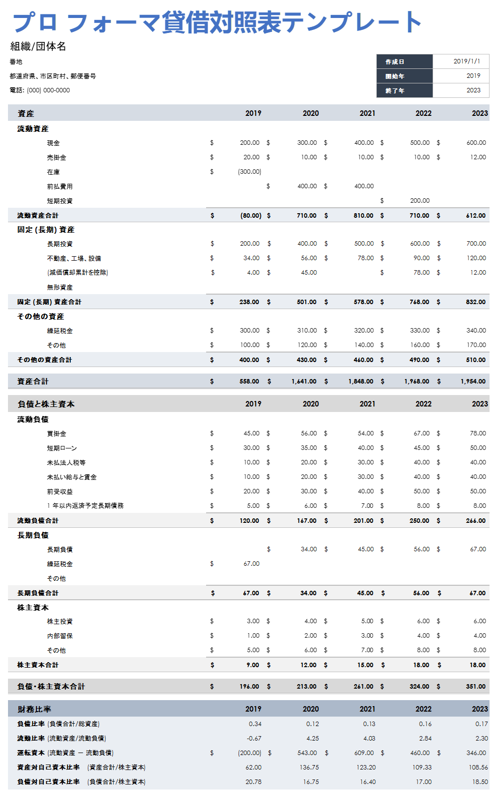エクセル貸借対照表テンプレートの無料ダウンロード - エクセルフリー 無料ダウンロード。