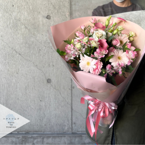 薔薇の入ったピンク系の花束プレゼントに最適な大人ピンクの花束 - 札幌 花屋ハナトツムグ ONLINE SHOP。