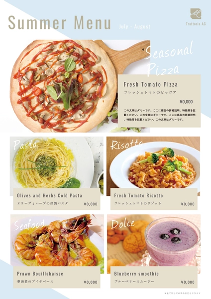 メニューテンプレートで無料デザイン作成 - デザインAC。
