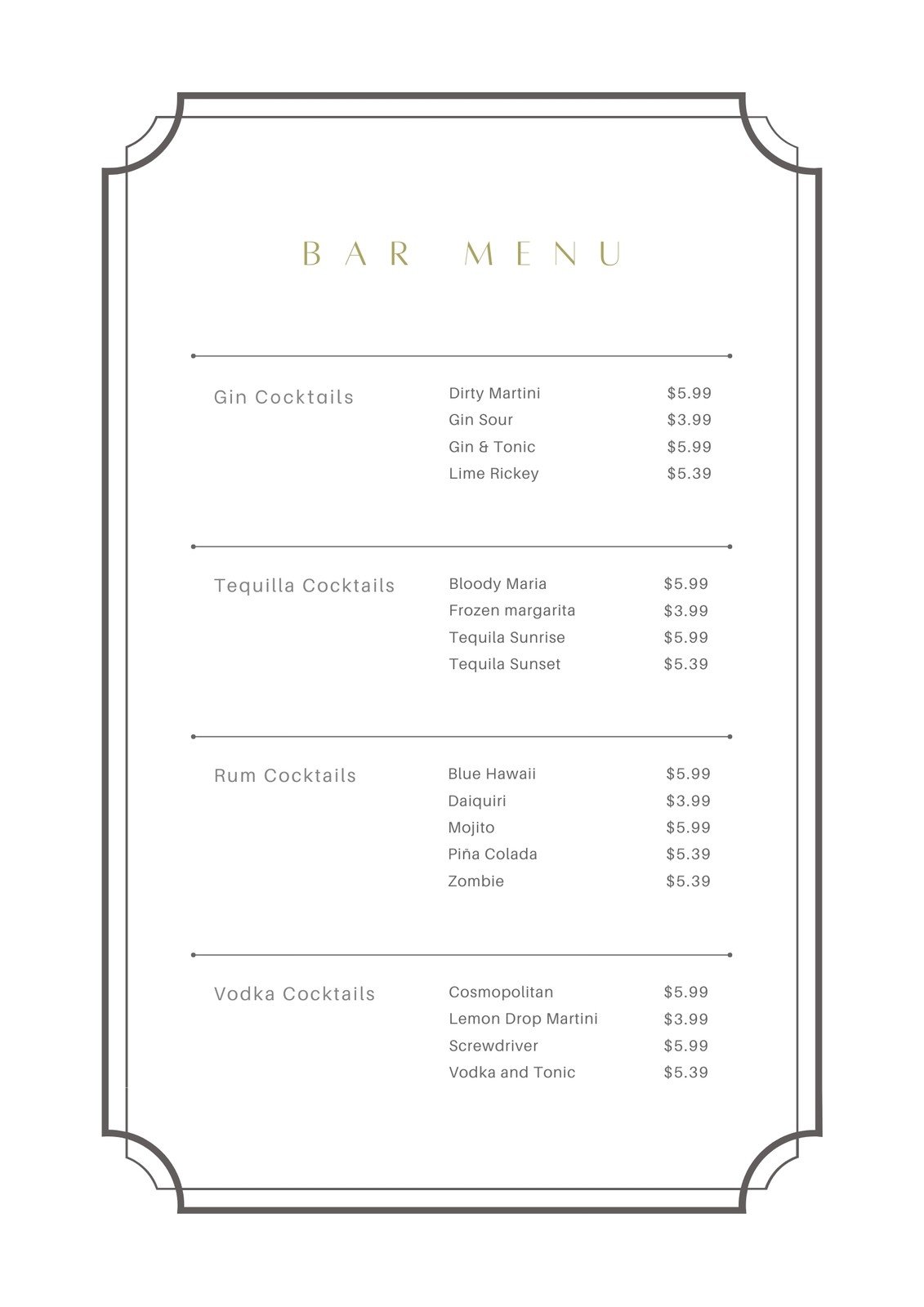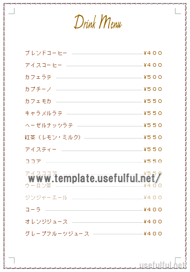 おしゃれな飲み物・ドリンクメニュー表「Excel・word・pdf・A4」💗無料ダウンロード「かわいい」雛形・テンプレート素材。