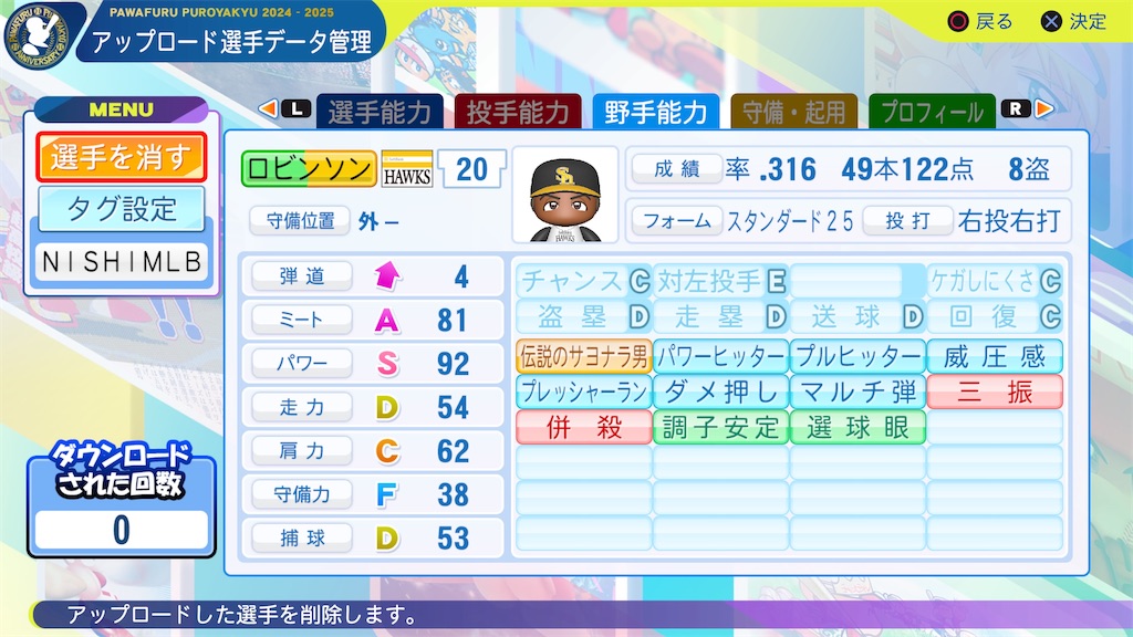 パワプロ2025 ジャッキー・ロビンソン 1949年 パワナンバー - NishiのパワプロMLB査定ブログ。