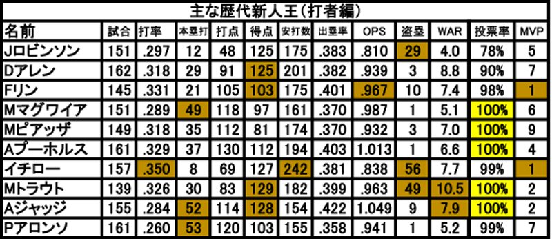 メジャーリーグ歴代最高の新人王バッターは誰だ? 三尾圭- エキスパート - Yahoo!ニュース。